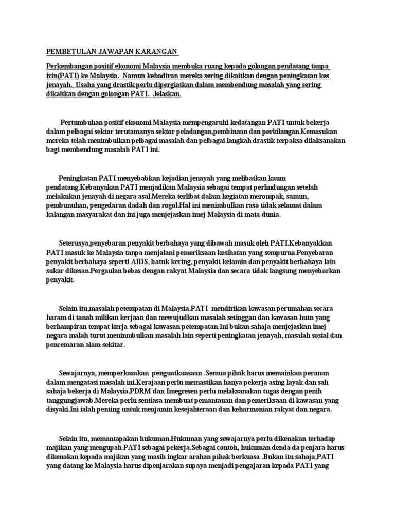 Sebelum menjawab soalan yang diberikan pelajar perlu memahami akan kehendak tajuk soalan karangan. Kaedah faktahuraiancontoh dan rumusan kecil FHCR i Fakta. Domain Awam Kebanjiran pendatang asing di negara kita meresahkan penduduk.